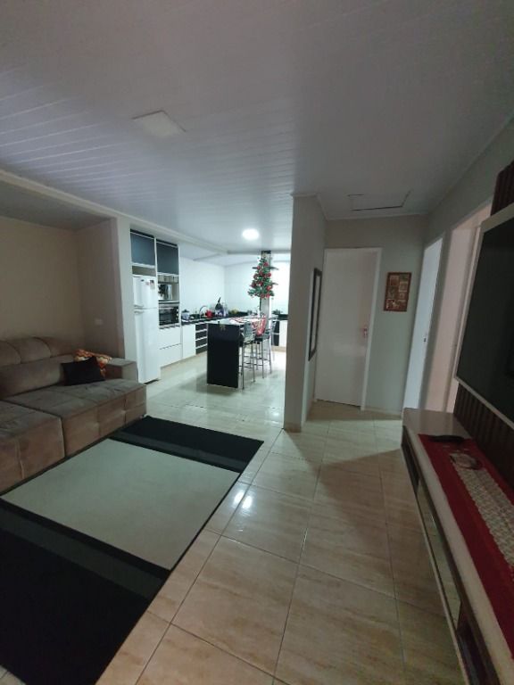 Casa no bairro campo de Santana, no moradias Rio bonito. Rua Alda Basset Bertholdi 372 Garagem para 2 carros pequenos Na cozinha: Balcões com tampo em granito armários planejados, forno elétrico embutido, cooktop, mesa americana, passa prato, lavanderia.1° quarto com 2 camas de solteiro e armários planejados 2° quarto de casal com cama baú de solteiro 3º quarto de casal, sendo suíte com móveis planejados e uma sapateira. Só não fica a geladeira, sofá e nem a cama de casal.