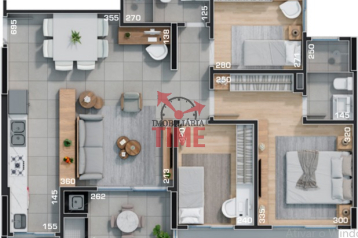 O apartamento possui ainda uma cozinha com armários planejados, área de serviço e 1 banheiro social. Todos os cômodos são bem iluminados e arejados, proporcionando conforto e bem-estar aos moradores.