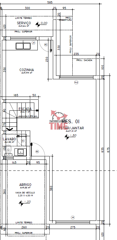 • Térreo: garagem coberta, lavabo, sala de estar/jantar integrada à cozinha em conceito aberto + quintal nos fundos